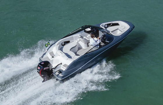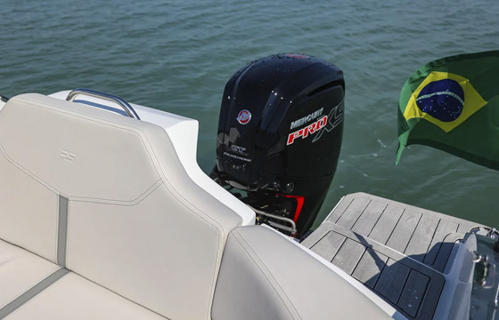 Pesando cerca de uma tonelada com o motor de popa de 115hp, de quatro tempos, ela navega a 25 milhas em regime de cruzeiro, a 4100 RPM, com consumo estimado de 14 litros por hora. Já na rotação máxima ela atinge até 40 milhas, ótimas marcas para esta motorização recomendada.