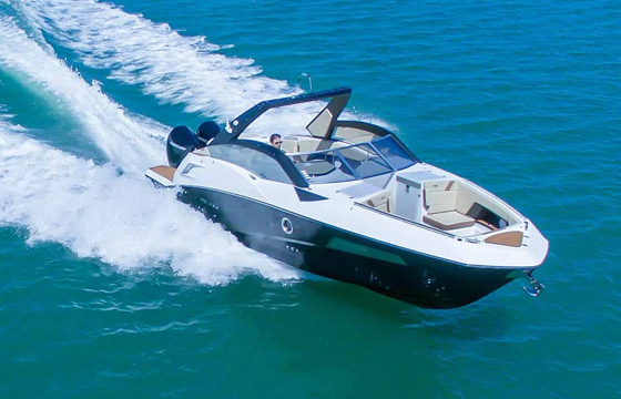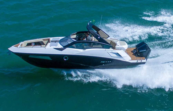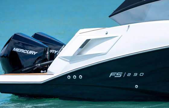 A FS 290 Outboard pode contar com até dois motores de popa instalados fora do barco, que deixam a plataforma livre para acomodar livremente as pessoas a bordo. A lancha é perfeita para você que busca navegar em águas rasas tanto para passear com a família quanto para praticar algum esporte náutico como, por exemplo, a pesca.