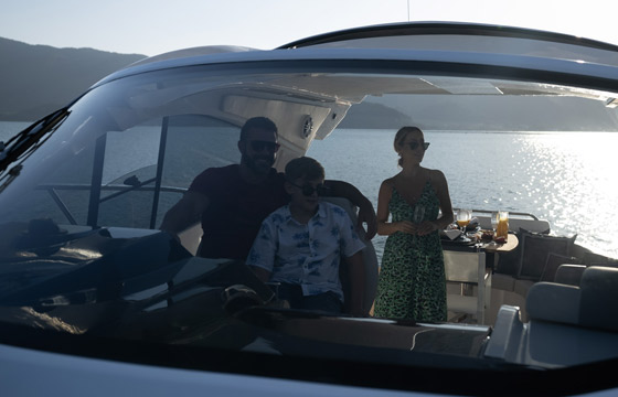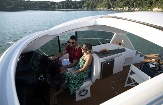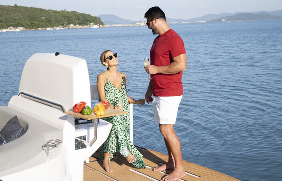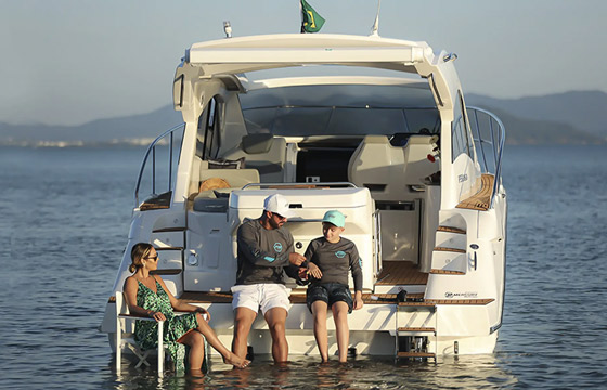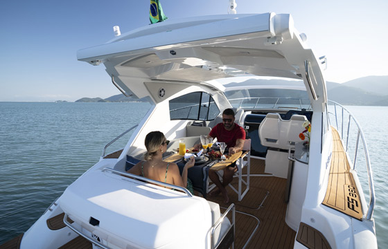 Design exclusivo, uma excepcional funcionalidade e características apresentadas em embarcações maiores, torna esse modelo um destaque em sintonia com os seus hábitos e necessidades. A Fs 360 traz uma ampla plataforma de mergulho com sistema hidráulico que permite submergir, passadiço lateral largo e seguro, espaço gourmet completo, duas escadas laterais para facilitar a circulação e área de popa com soluções inteligentes.