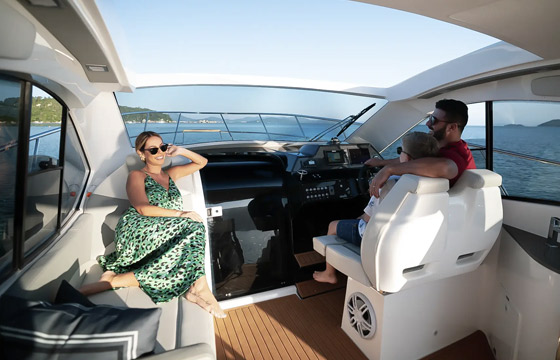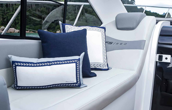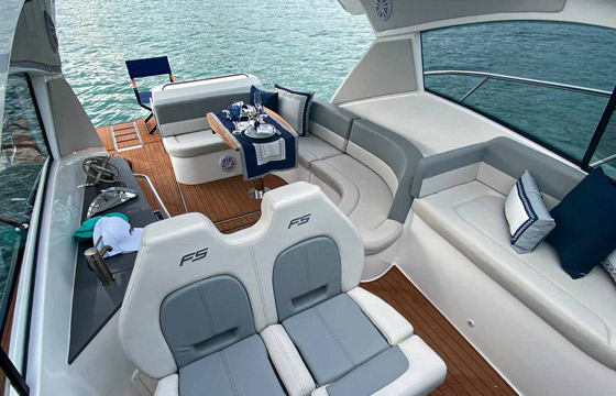 Acabamento de primeira, cabine espaçosa e navegação ágil. A FS 360 Allure foi pensada com esmero em cada detalhe. Um amplo espaço de convívio para você passar dias inteiros no mar com muita comodidade e segurança, ou apenas passeios de fim de semana, aproveitando todos os atributos que tornam esse modelo um destaque e sinônimo de excelência.