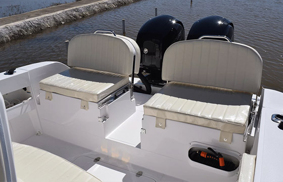 • Duas caixas de peixes com poliuretano injetado de 80 litros cada (BB/BE), Tampas com fecho e drenagem externa.
