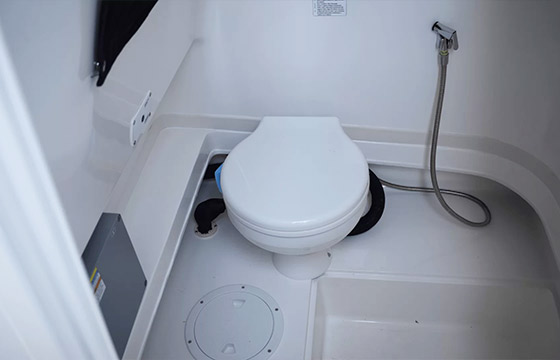 • Tampa de Fibra no piso para acesso ao tanque de água doce e hidráulica.