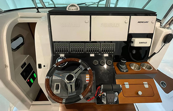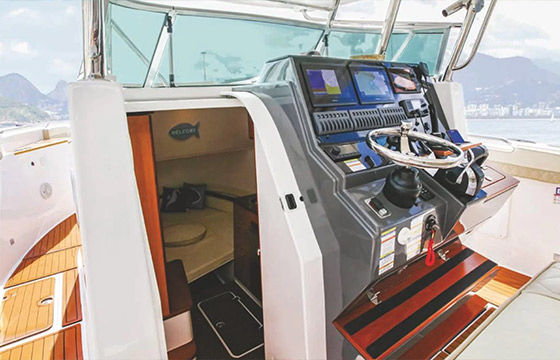 • Bancos de pilotagem triplos e rebatíveis.