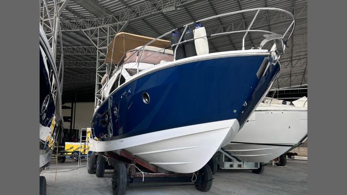 Lancha Sessa 42 Fly, ano 2014, equipada com 2 motores Volvo IPS 600, em excelente estado, com apenas 743 horas de uso. Equipada com joystick, plataforma submergível, luzes sub-aquáticas, churrasqueira, ice maker, gerador, ar condicionado em todos os ambientes, geladeiras, 2 suítes, antena de radar e guincho elétrico. Acompanha carreta de rodoencalhe. Aproveite esta oportunidade!